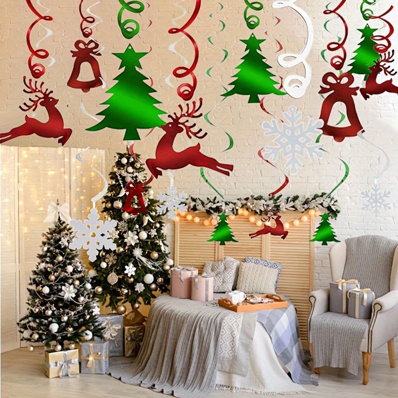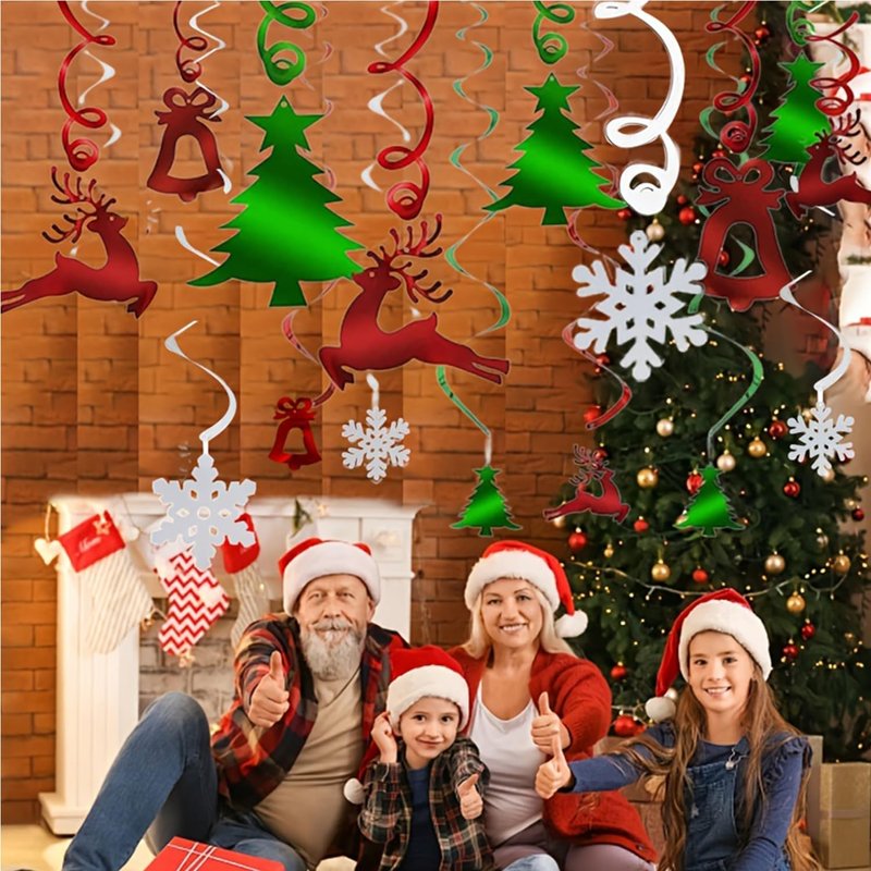 • 60 Pieces Christams Party Decorations Santa Hanging Swirl Set for Christams Birthday Party Supplies for Home,Includes 30 pieces of Hanging Swirl, 30 pieces of Christmas themed hanging cards.(2*3 designs snowflake patterns, 6*Bell pattern, 6*Elk pattern, 12*Christmas tree pattern)