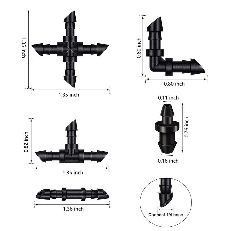 Design:Barbed 3/5 irrigation tube plugs and 4/7 irrigation stopper,Fits 1/4'' Tubing