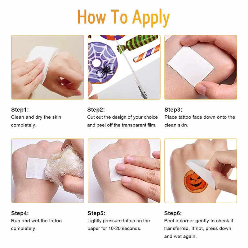 - Easy to Apply and Remove: Choose the pattern you like and then peel off the clear plastic film, place the sheet on skin, dampen with wet cloth and wait a few seconds for it to dry, easily removed by rubbing with body oil or alcohol.
