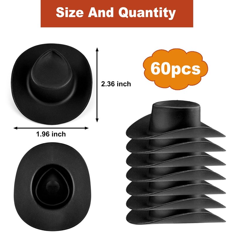- Plastic Mini Western Cowboy Hats: the package contains 60 mini black cowboy hats, enough quantity to meet your decorative needs, you can also share with your family and friends