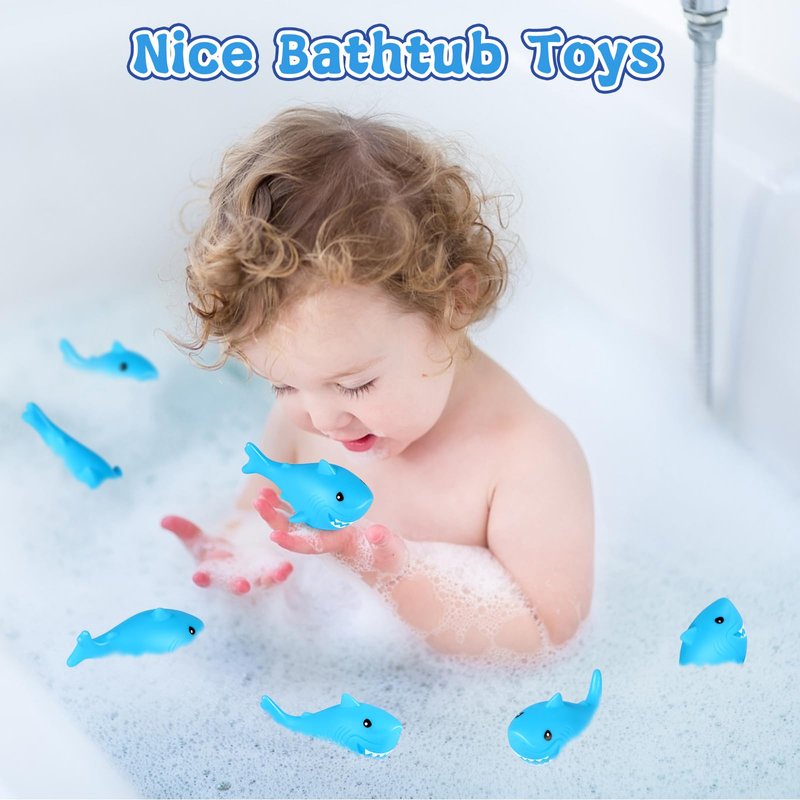 - Interesting Squeak Sharks: these blue rubber bath sharks are designed in the appearance of sharks, and when squeezed, making cute "BEBE~" sounds when squeezed to attract the little ones' attention and make bathing fun; They can be scattered in the bathtub, shower or corner to encourage them to enjoy bathing and make bath time an enjoyable experience