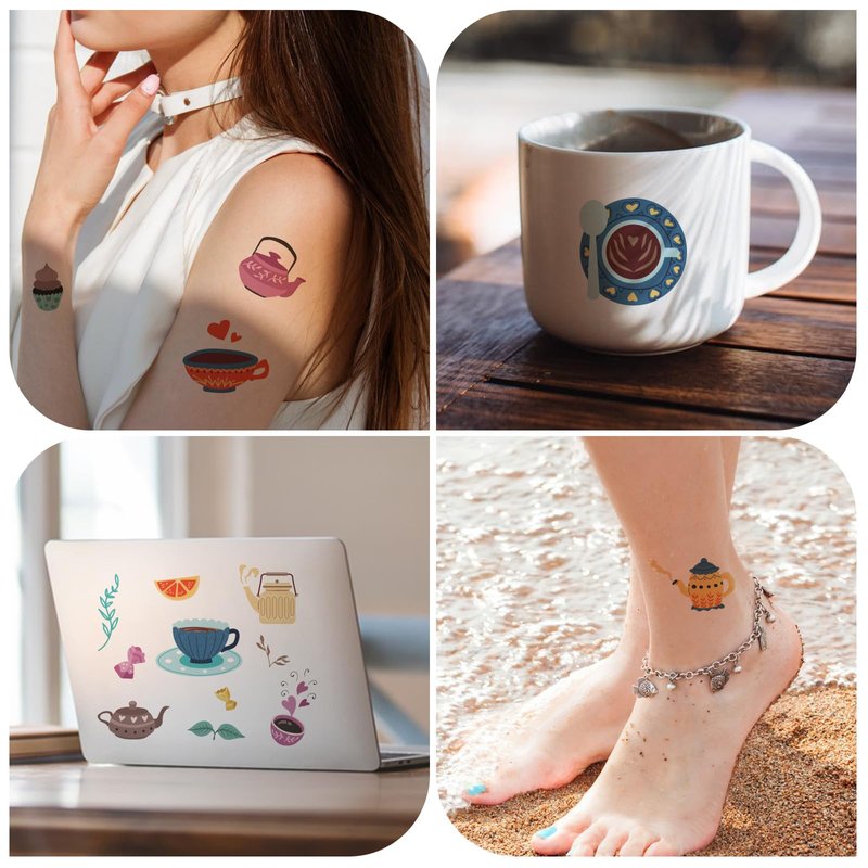 - Tea Party Decorations: You can stick it on your hands, arms, face, or wherever you feel safe. You even can put it down on glass, suitcase, water bottle, luggage, laptop, phone case, etc.