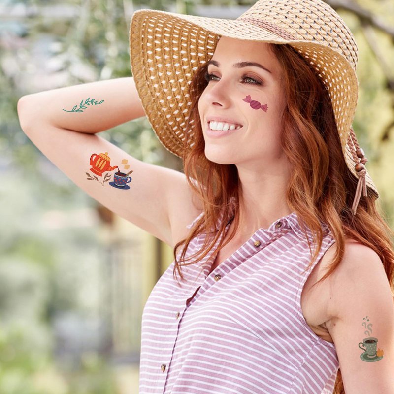 These tea party tattoos are colorful and various, enough to attract kids. You can send the set to your kids or other children, then, they can decorate themselves as they like.