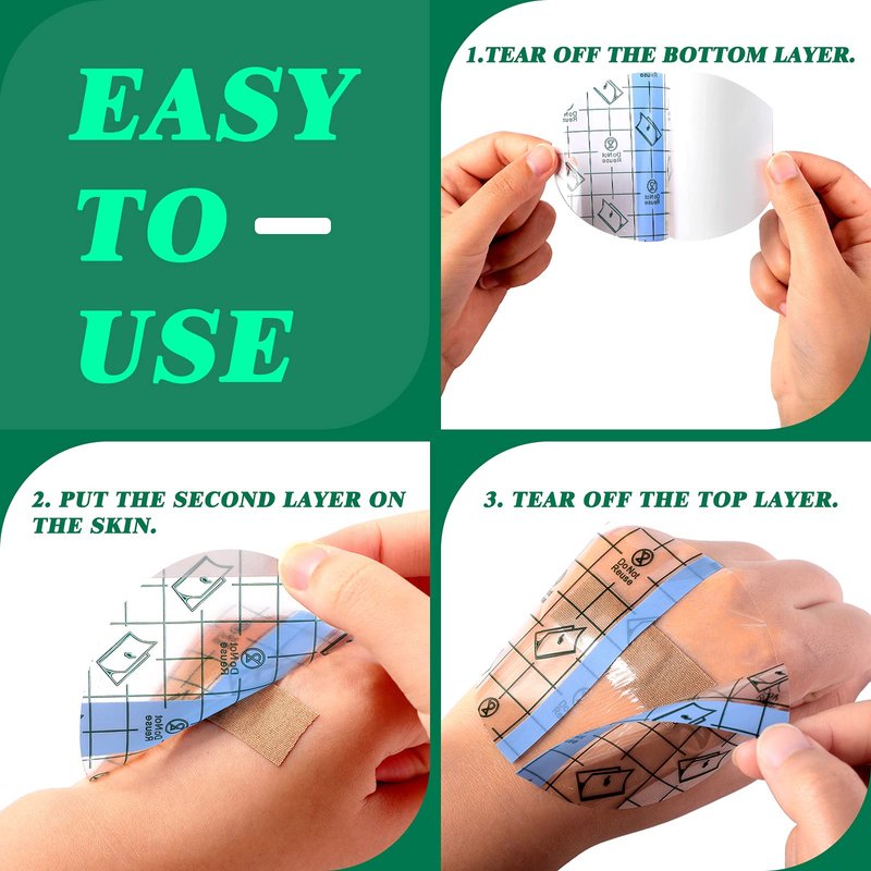 - Practical design: the dressing tape has a shape in ellipse to satisfy different needs, when using it, you just need to peel off the bottom release paper and the blue line right in the middle of the waterproof transparent adhesive bandage