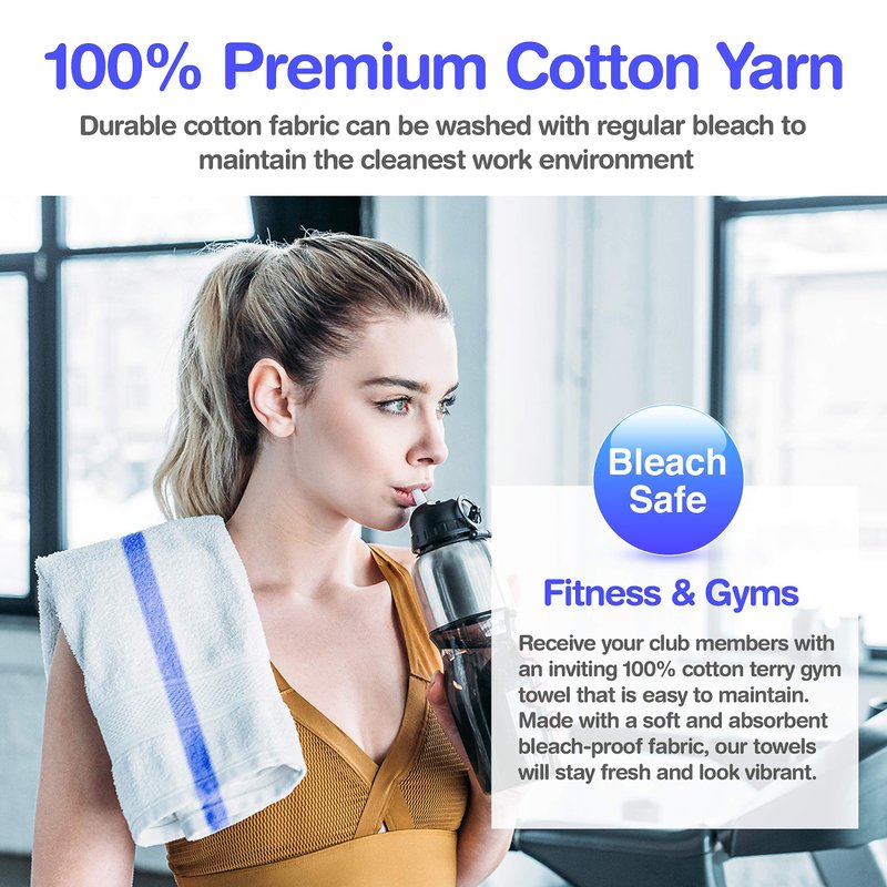 - Fitness and Gyms: Perfect for health clubs and yoga studios, this 16 x 27 hand towel welcomes your customers and members to a clean and safe workout environment.