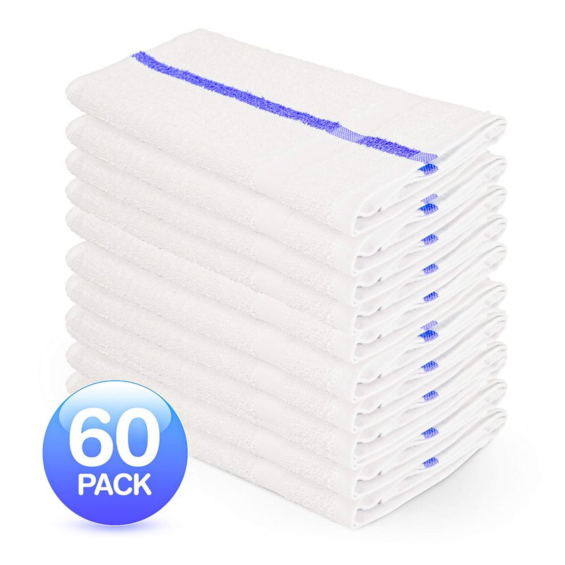 60 Premium Salon Towels – 100% Cotton 16 x 27 Inches – Absorbent Hand Towels for Gym, Beauty Spa, Barber or Hair and Nail Care – Bulk Wholesale Package for Hotels – Durable and Soft - Blue Stripe