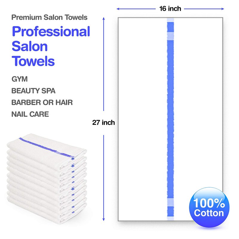 - Our company is a leader in commercial towels. These white salon towels come in bulk packages and available in three color strips that will not bleed when washed with bleach. Different colors may be used for different purposes, such as pedicure, manicure and facials.
