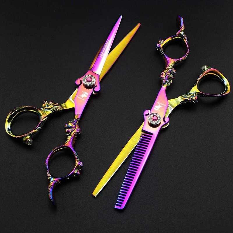 6.0" Professional Japan 440C Hair Cutting Shears - Salon Hair Blending/Thinning/Texturizing Scissor for Barber or Home Use A-rainbow