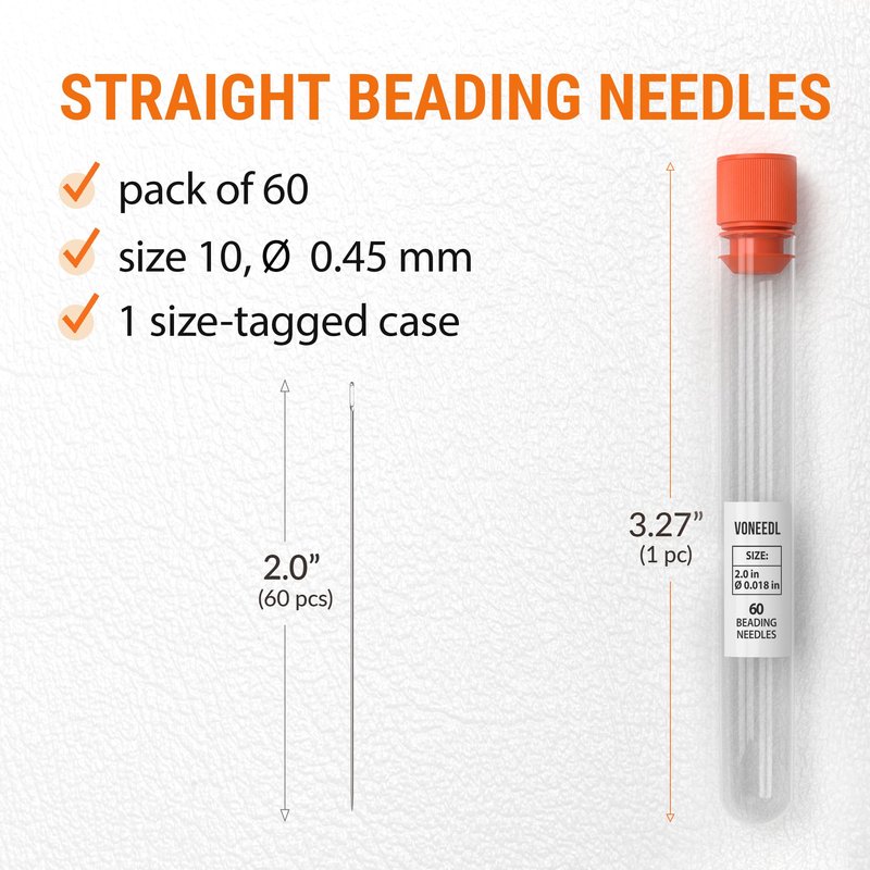 - GREAT QUANTITY: This beading set contains 60 fine sharp needles, making it ideal for various crafting projects such as jewelry making and bead embroidery. Measuring 0.017in (0.45mm) diameter and 2.04in (52mm) length, these needles are suitable for your sewing needs