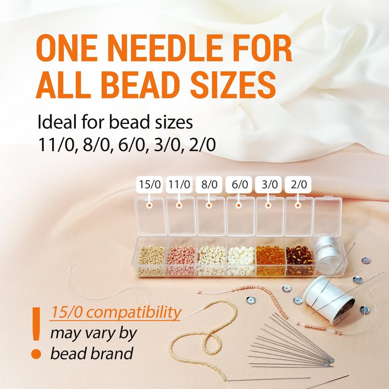 - NEEDLE SIZE COMPATIBILITY: Our sharp thinnest needles, are expertly crafted for precision beading. They're ideal for popular bead sizes including 11/0, 8/0, 6/0, 3/0, and 2/0. While they can also work with 15/0 beads, compatibility may vary based on the bead manufacturer