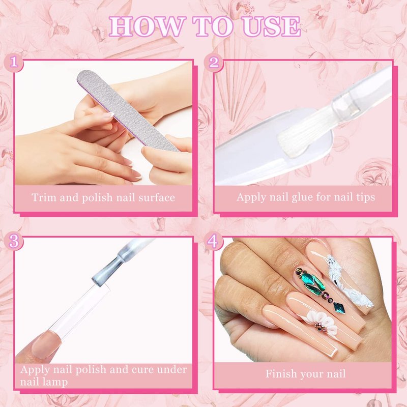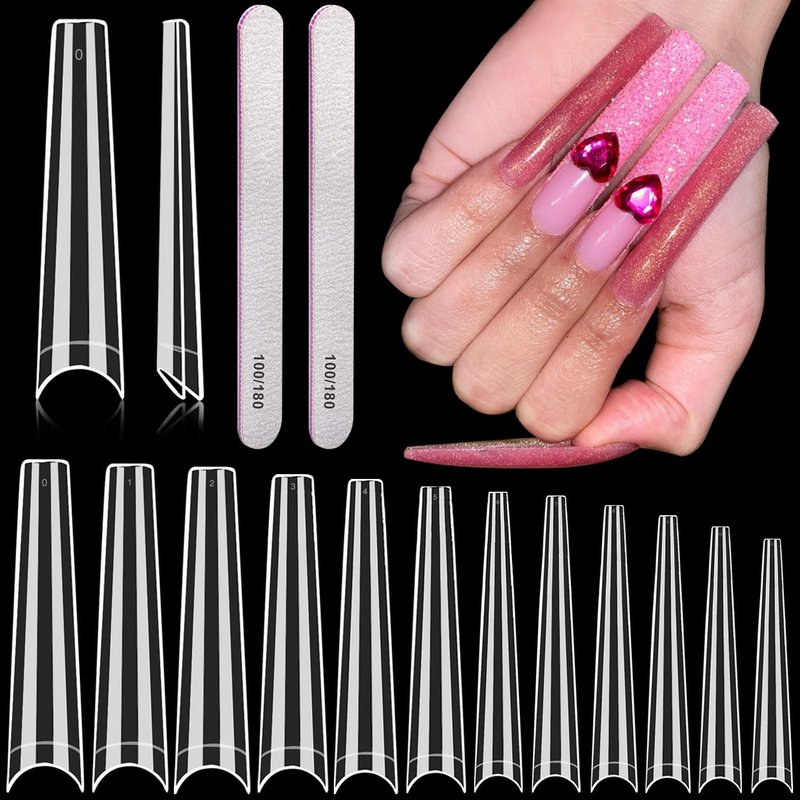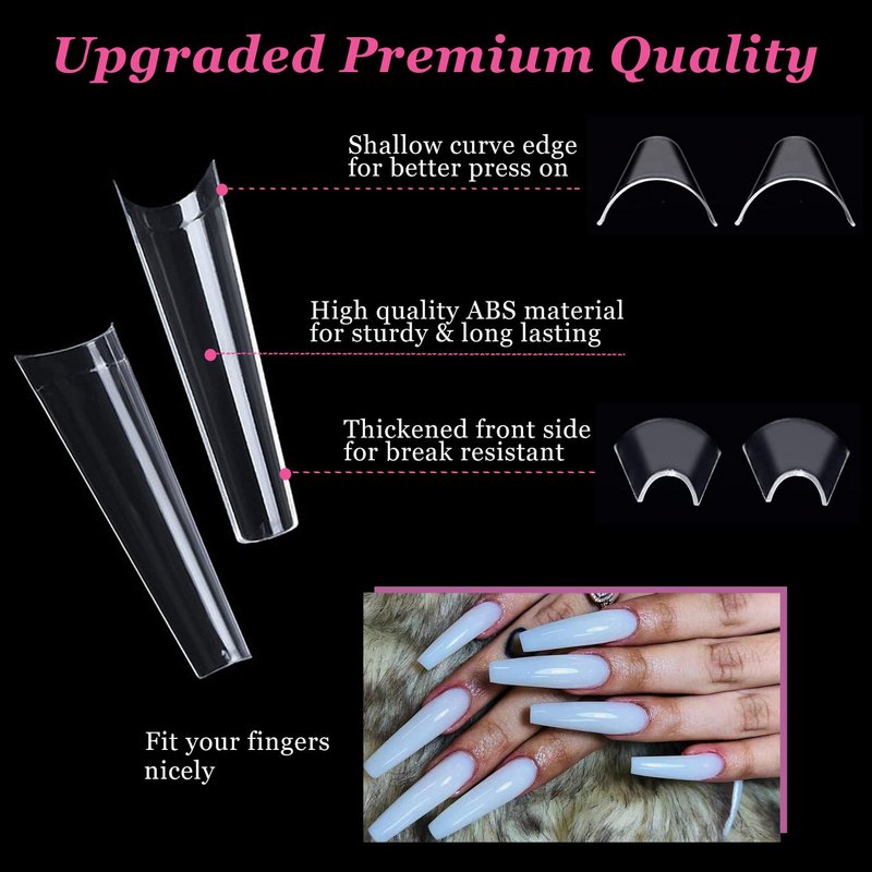 - Premum ABS Material: These extra long acrylic nail tips are made with high quality ABS material, sturdy and long lasting. With perfect length and thickness, lightweight and durable. Apply these nail tips can nicely hold the color without separating or streaking.