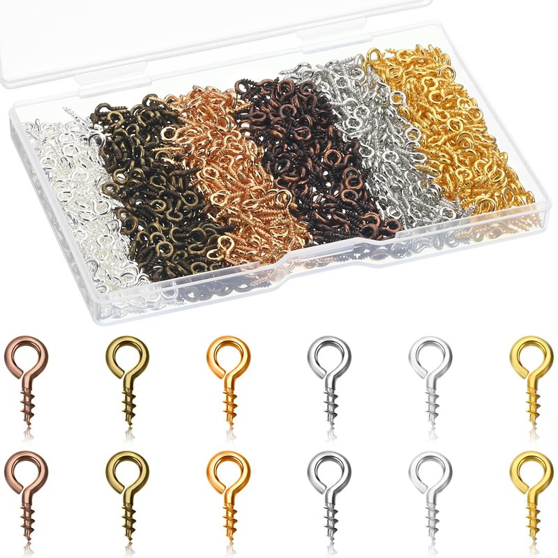 600 Pcs Screw Eye Pins 6 Colors Eye Pins Hooks Small Metal Eyelet Screws Mini Screw Eye Pin Peg Self Tapping Screw Eye Hooks for Jewelry Making DIY Art Craft(4 x 8 mm)