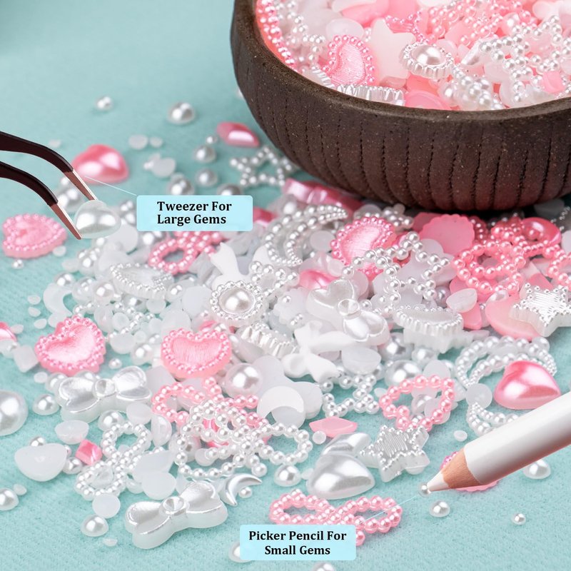 - 💎What You Will Receive: You will get a pack of White&Pink multi styles 3D nail art charms and flatback half round White pearls, a tube of 15ml NO WIPE nail rhinestone gel glue(UV/LED Needed), a pc of tweezer and a pc of pickup pencil.