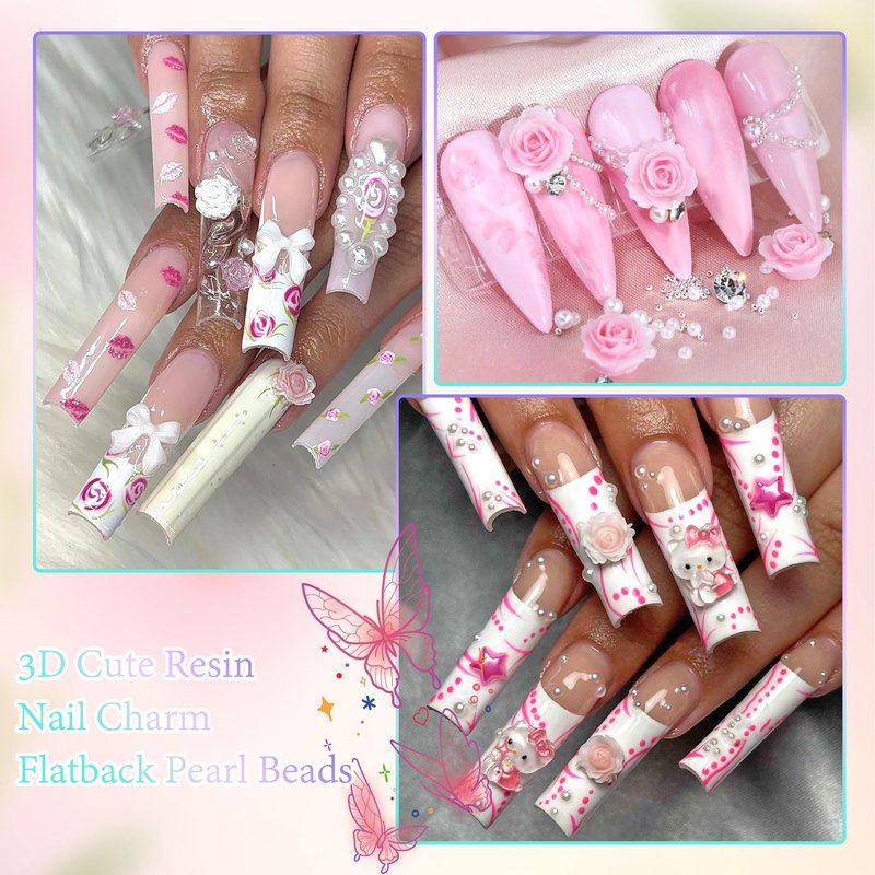 - Easy To Use And Carry: Flat Back Floral Nail Charms for Acrylic Nails Pearls Is Very Light And Convenient To Store And Carry, So You Can Change And Use It While Traveling Or Working. Can Be Easily Applied To Natural And Artificial Nails Clean The Surface Of The Nail, Apply The Primer, And Apply It To The Nail With Glue.It'S Not Only Suitable For Professional Nail Salons, But Also For Home Diy Nail Art Or Home Decoration.