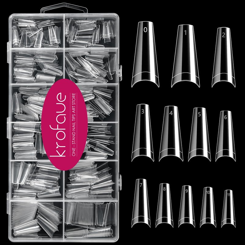 600PCS Half Cover Coffin Nail Tips - Acrylic Nail Tips, krofaue 12 Size Clear Nail Tips, Half Cover Acrylic False Nail Tips With Box for Nail Tips Art Salons and Home DIY (Clear)