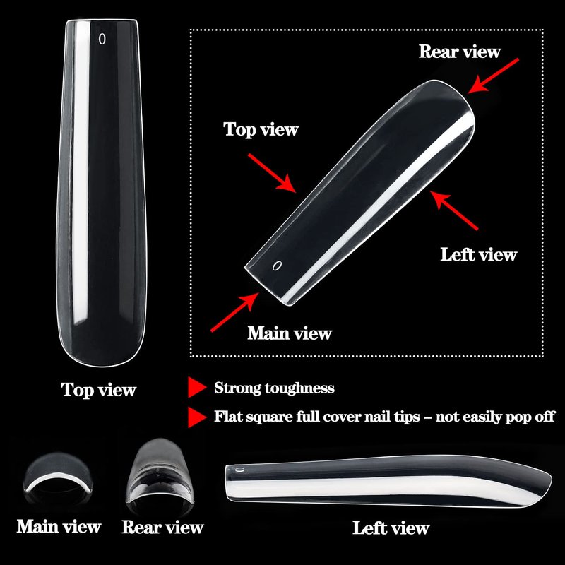 - High-quality Material: These clear square nail tips are made from ABS plastic, durable, perfect length and thickness to last for 3-4 week. Strong toughness make no crease and whitening after cutting and bending. Flat square full cover nail tips is not easily pop off, Easily trim and file your nails to any length and shape as you like.