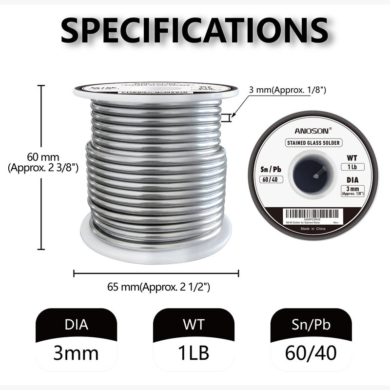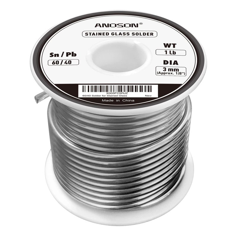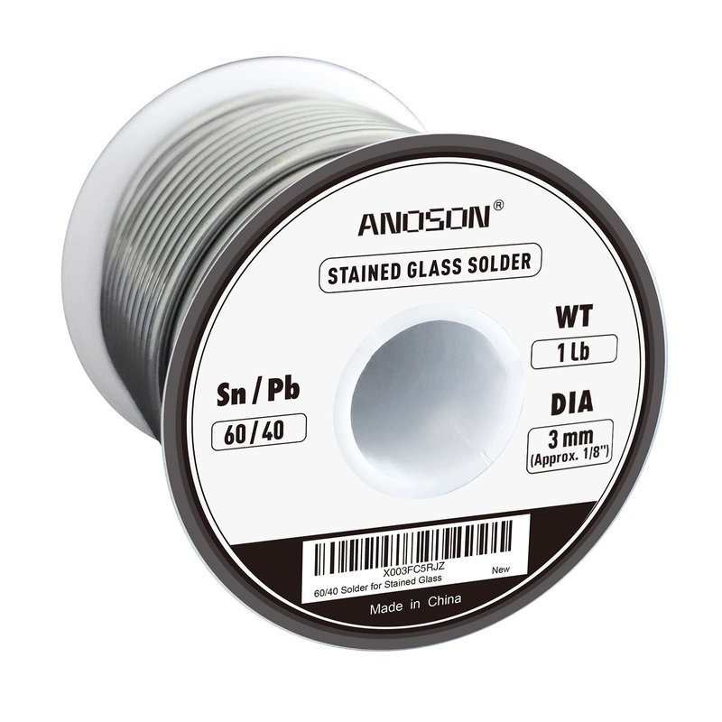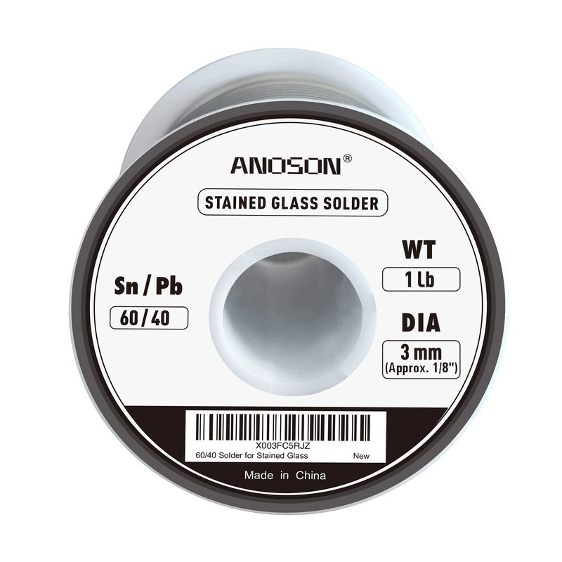 60/40 Solder for Stained Glass, 1/8"(3mm) Dia, 1 lb Spool, Supplied by ANOSON