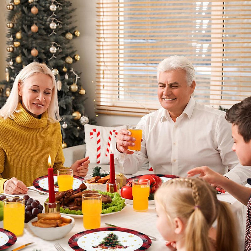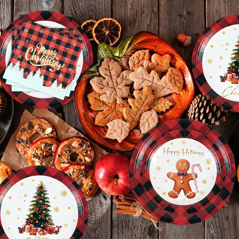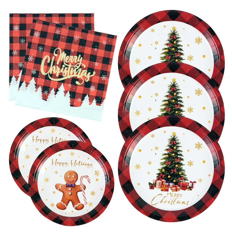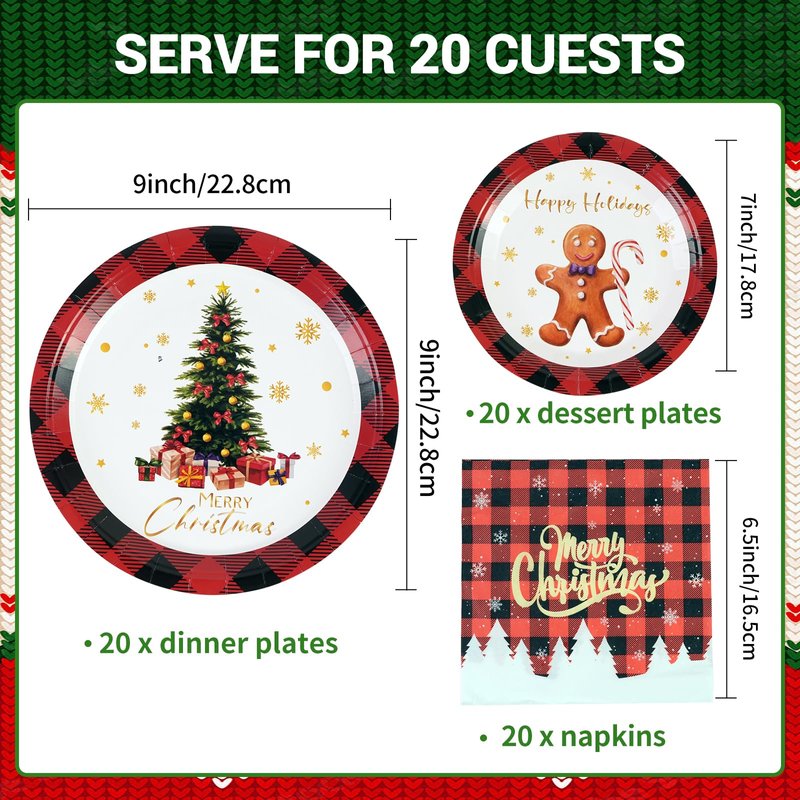 - 🎄 CHRISTMAS PAPER PLATES - The package features black and red buffalo pattern with 20 each of 9" Christmas dinner plates, 7" Christmas dessert plates and Christmas napkins, sufficient quantity and delicate patterns to satisfy your Christmas party decorations. Durable paper plates allow you to serve 20 guests at one time.
