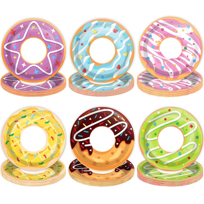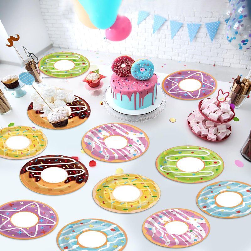 - 4.Quick and Easy Clean-Up: Our donut themed birthday paper plates are disposable, saving you time cleaning up after your party. There's no need to worry about spending a lot of effort cleaning up after a party.