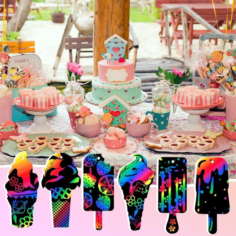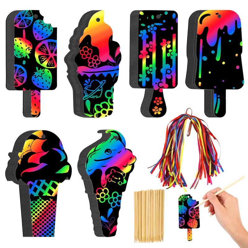 - Easy to Use: You only need to take the ice cream scratch card out of the packaging bag, choose the style you like, and then slowly scratch out the pattern with a wood stick, and you can see the real appearance of your favorite ice cream. You can also hang up the scratched cards as decoration.