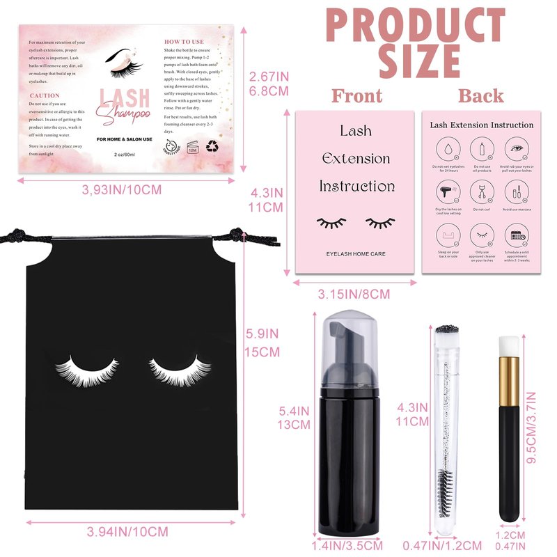 - What You Get: come with 10pcs pump soap bottles, 10pcs eyelash shampoo brush, 10pcs lash brushes tubes, 10pcs empty eyelash bags, 10pcs lash extension instructions cards and 10pcs lash bottle stickers, all of items will meet your eyelash care.