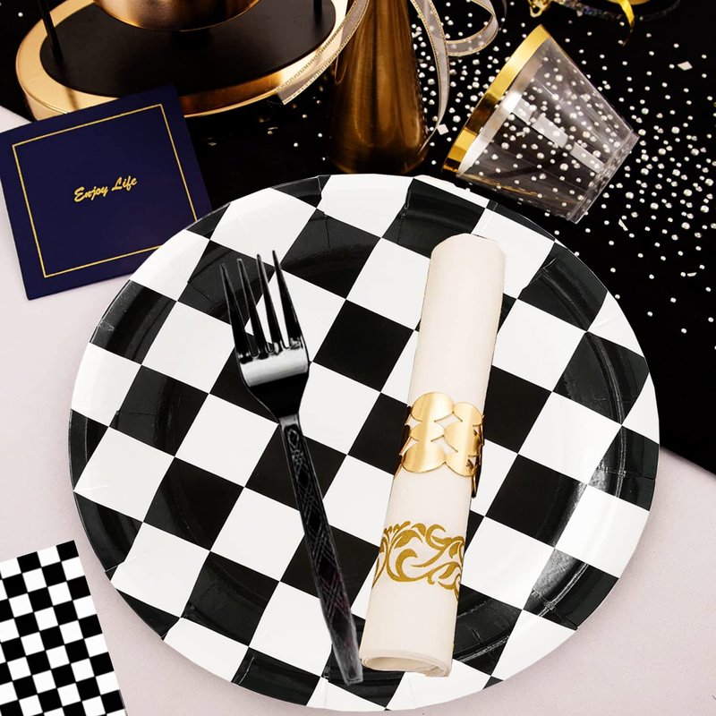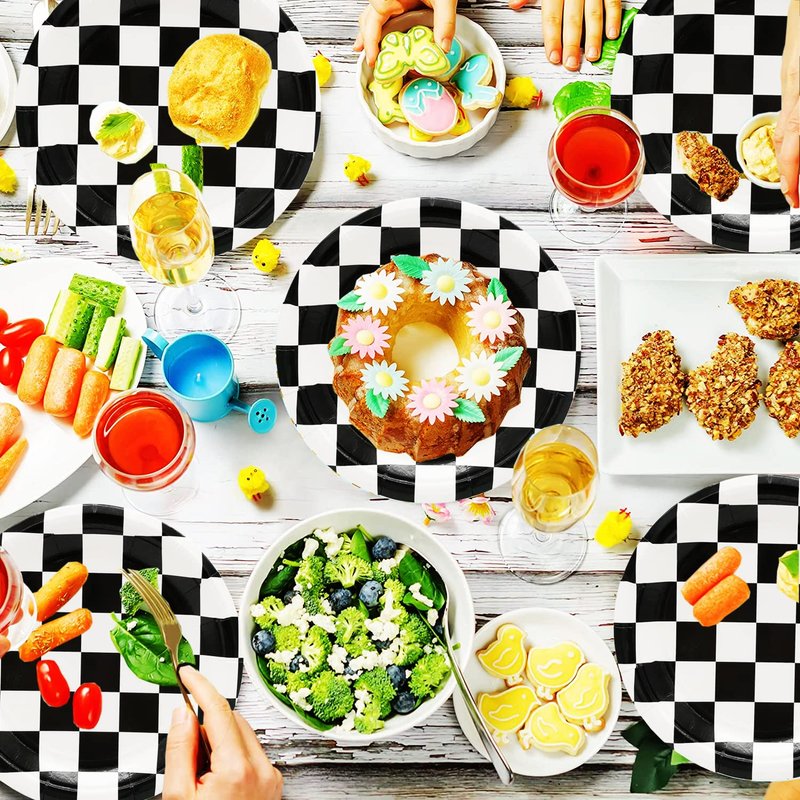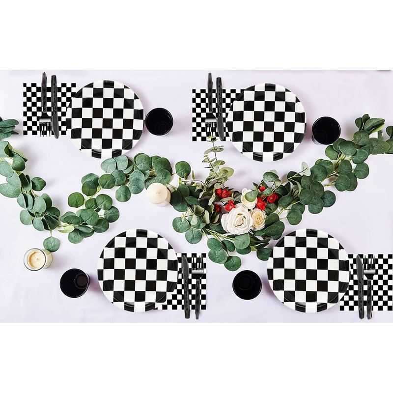 - 【Black & White Party Decoration】:Black and White Checkered disposable Tablewares is the perfect choice for almost any occasion.suitable for birthdays, weddings, baby showers,racing theme party,sports themed party,black and white checkered flag race car themed party,outdoor use,picnic,camping or hiking.