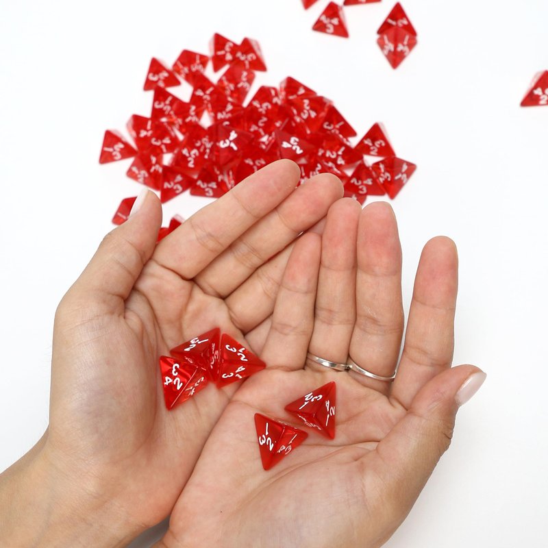 • Great Design: This set of tetrahedral dice has a bright red transparent color. The edges are wonderfully finished. No air bubbles inside. It will bring endless fun and be a perfect gift for friends!