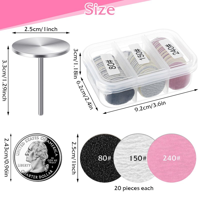 - 【Sanding Discs Set】You will receive 60 pieces of flat nail drill bit and 1 metal drill bit, black #80/grey#150/pink#240, each has 20 pieces. You can choose pedicure file for quickly shortening or trimming nails.