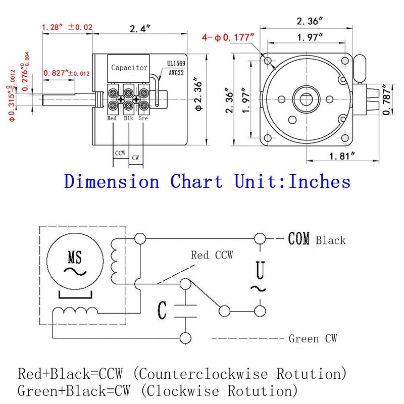 - 115V/60Hz 60rpm/min low speed AC Synchronous Motor,CW/CCW Control, which can be rotated counterclockwise or clockwise by adjusting the wiring method.the motor lead wire is waterproofed at the outlet of the outer casing