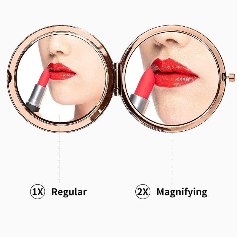 • Double Sides: One side is a standard mirror, the image is very clear and will not be deformed, which can ensure that your makeup is always in perfect condition. On the other side is a 2x magnifying glass, which can help you check the smallest details of your lipstick, hair, eye makeup, etc.