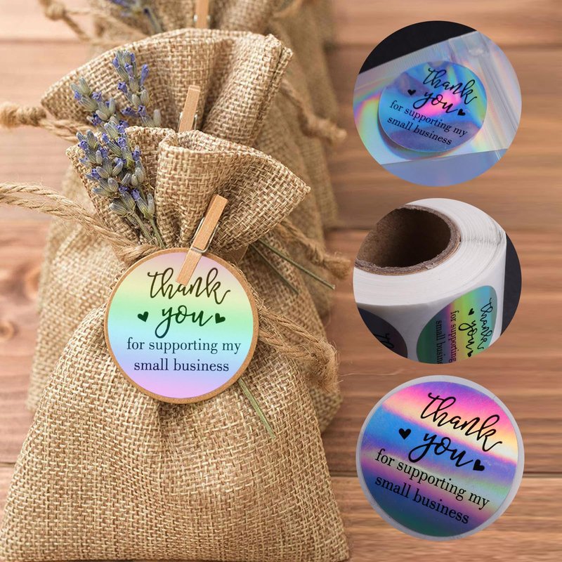 - WIDELY USED: The custom stickers for business logo's Holographic small business bags are suitable for packaging jewelry, jewelry, coffee beans, candies, rice, cookies, dried flowers, etc.; thank you cards and stickers can be applied to many occasions such as Christmas, New Year's, weddings, birthdays, weddings, communion or other celebrations, to express your gratitude to your customers; at the same time, this set is also suitable for stores, online stores, bakeries, jewelry stores, beauty stores, etc.