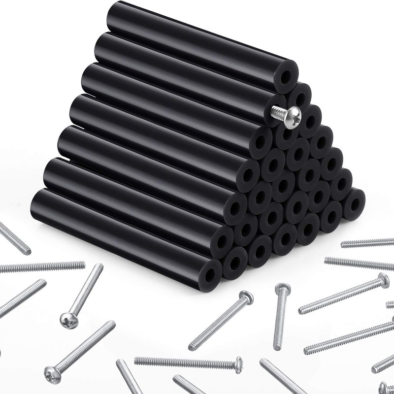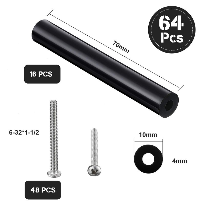 64 Pieces Electrical Outlet Spacers Electrical Outlet Box Extender Kit Includes 16 Pcs 3 Inch Switch and 48 Pcs 1-1/2 Inch 6-32 Thread Flat Head Device Mounting Long Screws (Black)