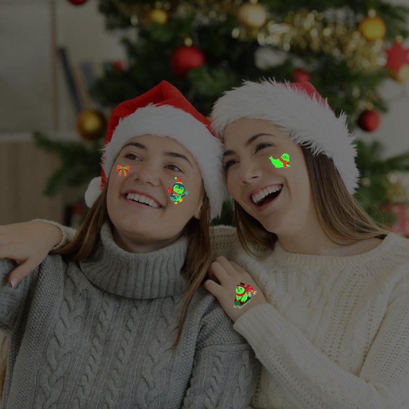- Glows in The Dark Christmas Tattoos: The Christmas temporary tattoo stickers adopt a luminous design, which shows the effect of color printing in the daytime, however will glow fluorescent color in the dark, last long-time after absorbing enough light, which brings a more fun festive atmosphere.