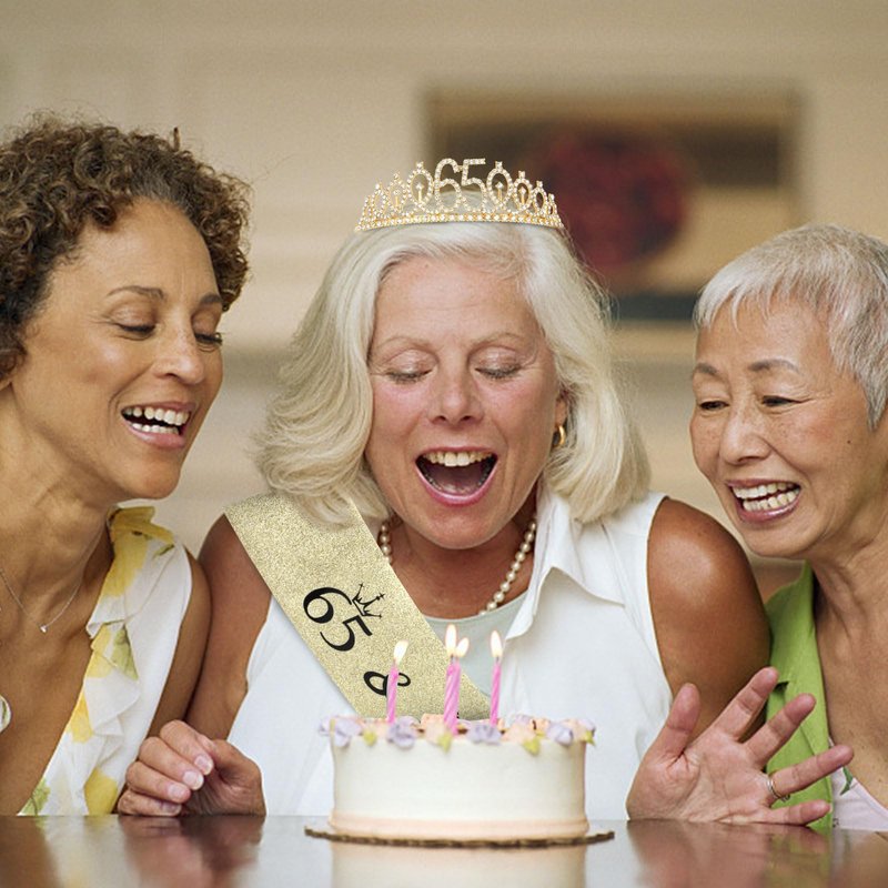 - Perfect 65th Happy Birthday Decorations: The sparkling birthday crown and sash are perfect for 65th birthday decorations for women, adding to your beauty and elegance. The tiara can also be used as a birthday cake topper.