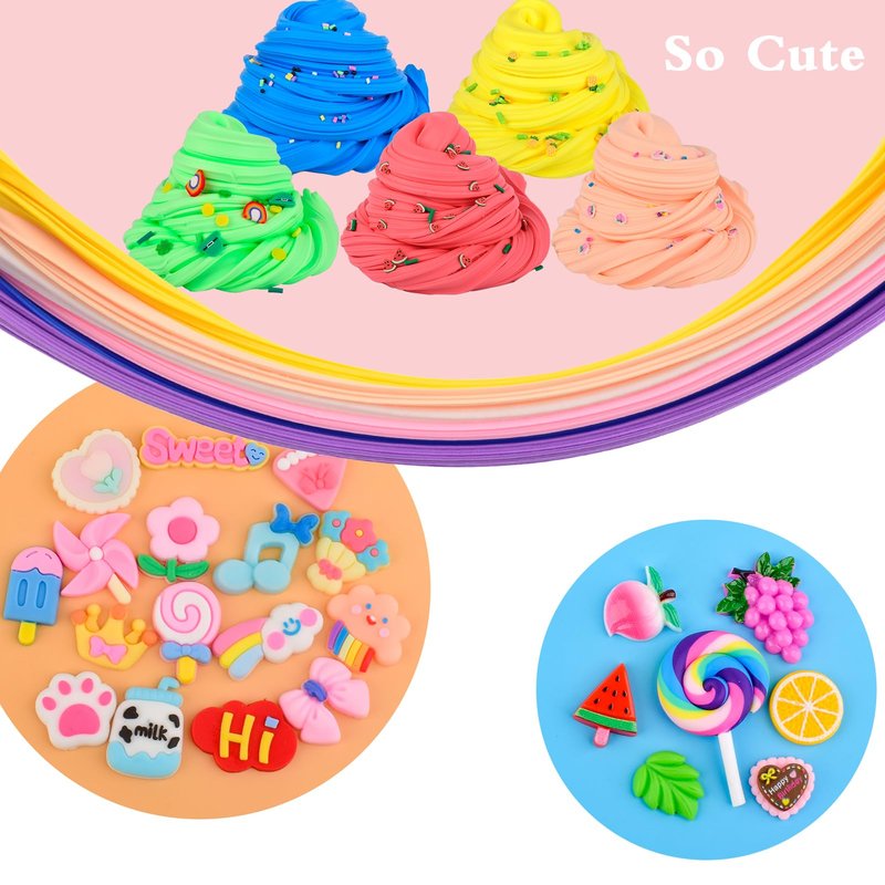 • 66 Pack Slimes Kit:Mini slime 66 packs, 16 DIY cute charms, 8 cute slime charms, 3 pack slime add ins, 1 gift box