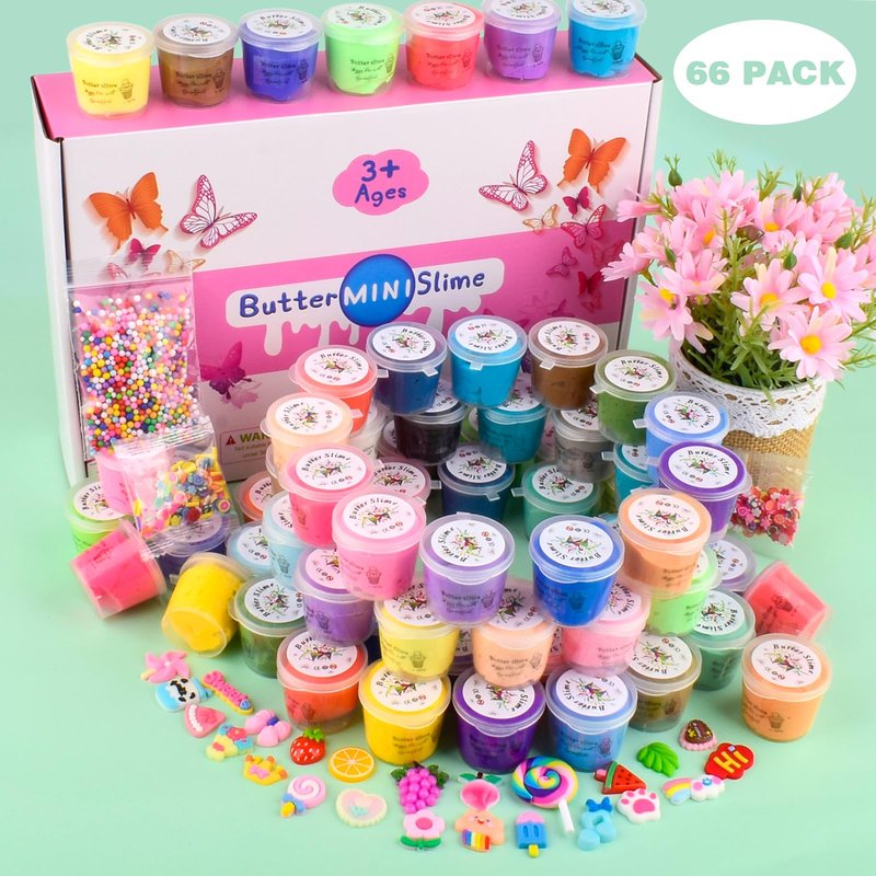 66 Pack Mini Butter Slime Kit, Super Soft and Non-Sticky, Scented DIY Slime with Cute Charms, Bulk Slime for Kids, Party Favors,Christmas Stocking Stuffers for Girls Boys 8-12, Classroom Rewards