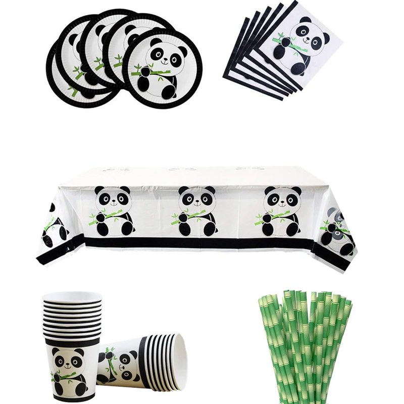 66 Pcs Panda Party Supplies, Panda Disposable Tableware Set with Panda Plates Cups Napkins Straws Tablecloth for Kids Baby Shower Birthday Decorations