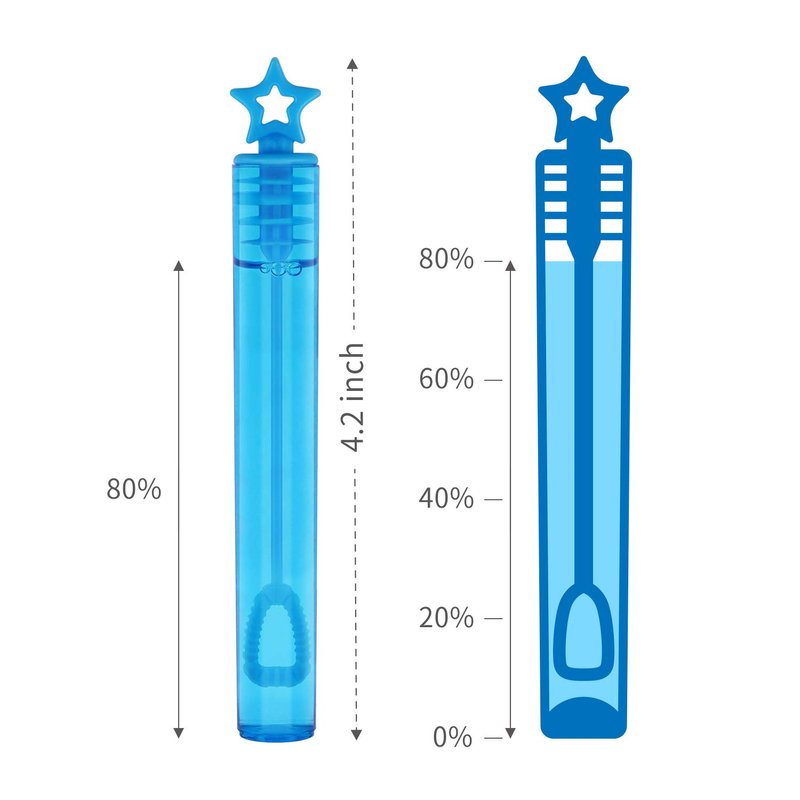 - Decent Size for everyone: It's hard to imagine that a 4-inch tube can provide so much joy.Not just perfect for little hands, but fits everyone. Each wand contains a 2 oz bubble solution and it can provide 30mins playtime, Not too much bubble liquid to clean up when kids drop the container. Not as messy as the traditional bubbles.Easy to use, refillable, very useful, and practical.