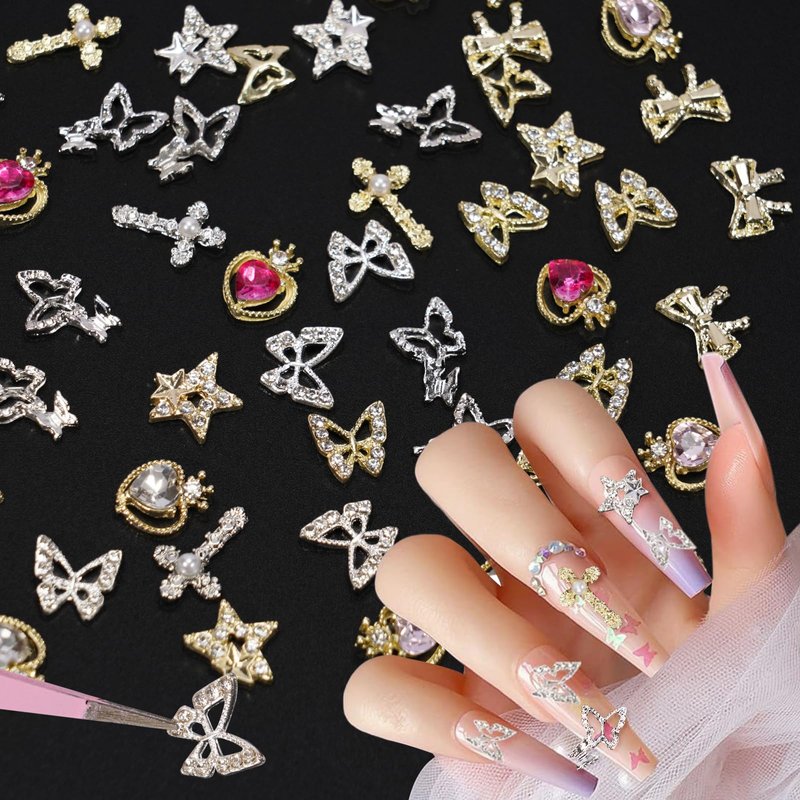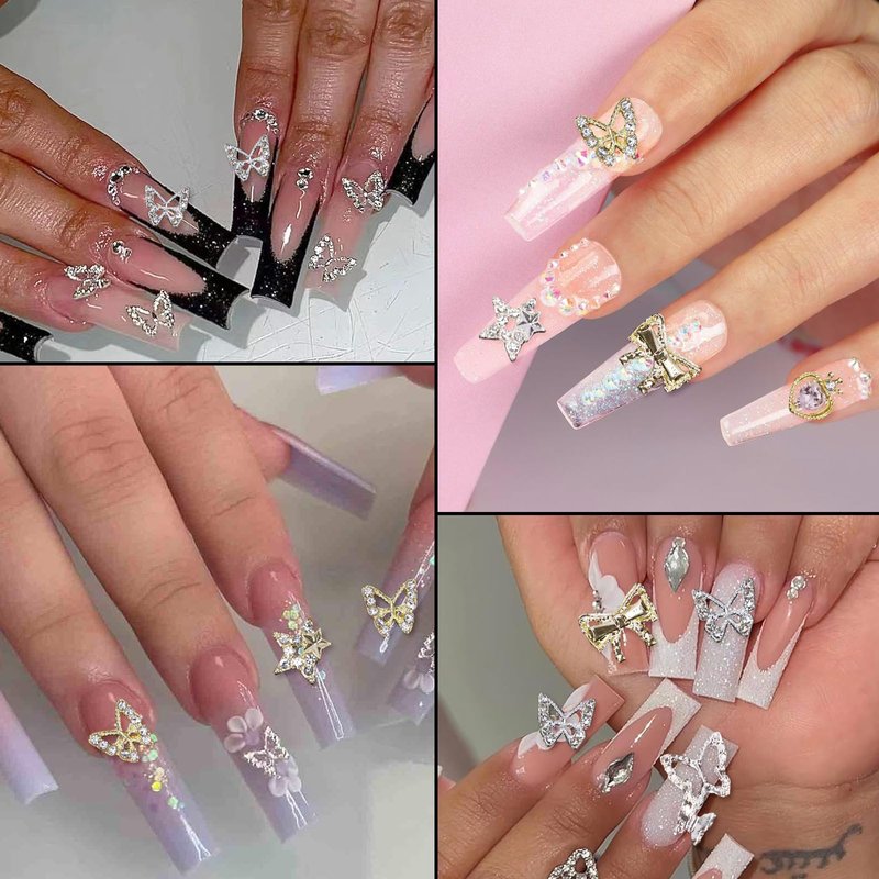 They are 12 different shaped of nail rhinestones in our box, including star, butterfly, cross, heart and so on, which are enough for your daily design. The nail charms sizes are suitable for your natural nails and acrylic nails.