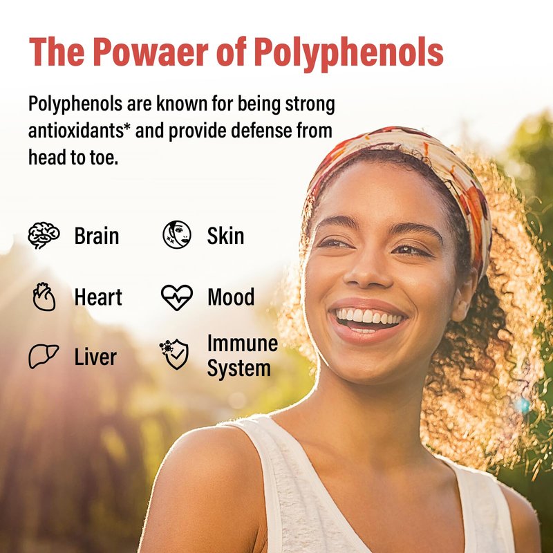 - SUPERIOR ANTIOXIDANTS* PLANT-BASED POLYPHENOLS: Polyphenols are natural compounds found in plants. They are renowned for their antioxidant* properties, which are beneficial to your brain, heart, skin, gut, and overall well-being