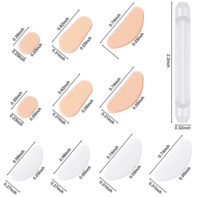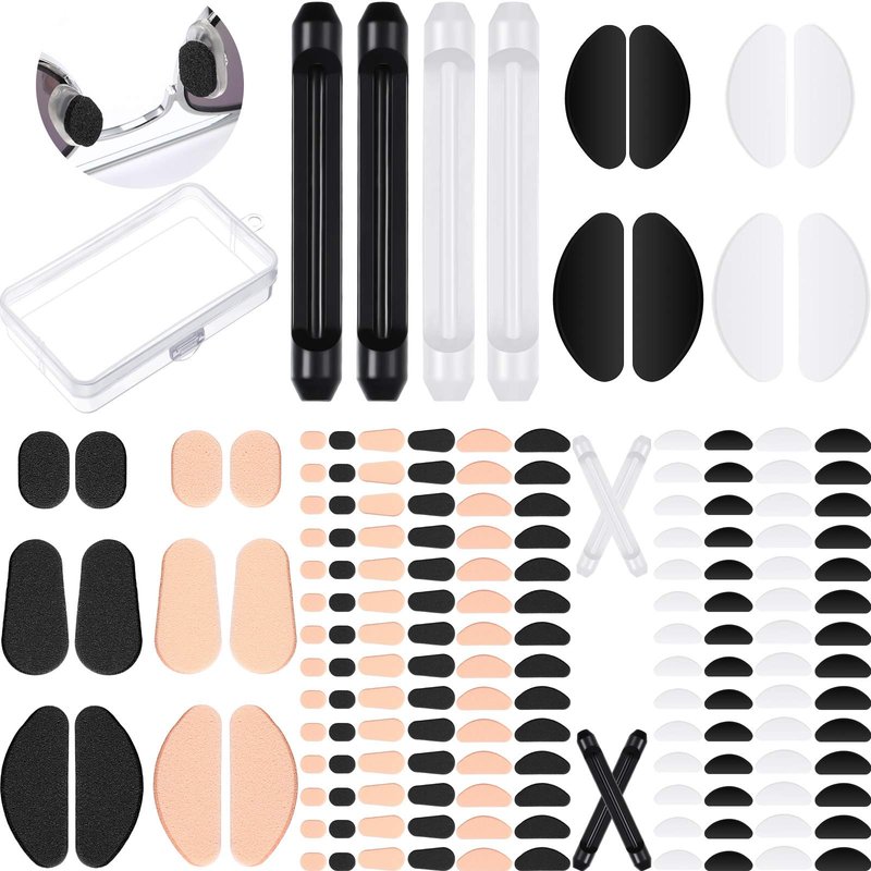 - What you will get: package includes 48 pairs of EVA foam sunglasses nose pads (4 pairs x 3 sizes x 2 colors x 2 thickness), 16 pairs of silicone eyeglasses nose pads (2 pairs x 2 sizes x 2 colors x 2 thickness), and 4 pairs of silicone eyeglass retainers (2 pairs x 2 colors), enough to meet your different needs