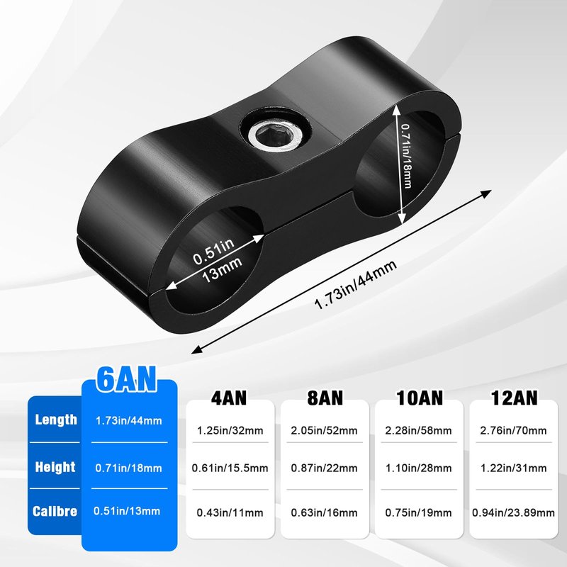 - More Choices - We can provide 4AN, 6AN, 8AN, 10AN hose separator clamps for you, of course, you can choose the Black or Blue for your project. So you will get the right items that you want, and don't need to spend more time looking for others