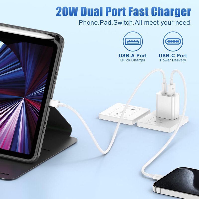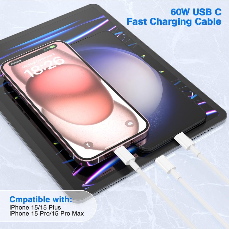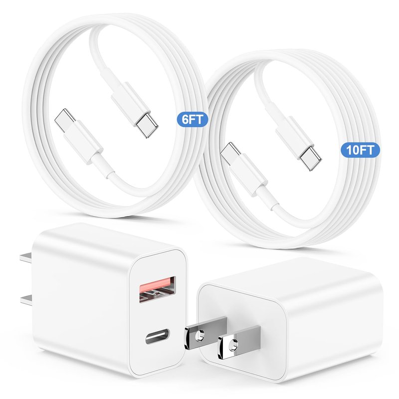 - [Packing List] 2x 20W dual port USB chargers, (6ft+10ft) USB C to C Cable (60W). Believe that our products will bring you a pleasant experience. If you have any questions, don't hesitate to contact us. We promise to solve your problems within 24 hours. (Contact information: "Account Service", "Order History", "Contact Seller").