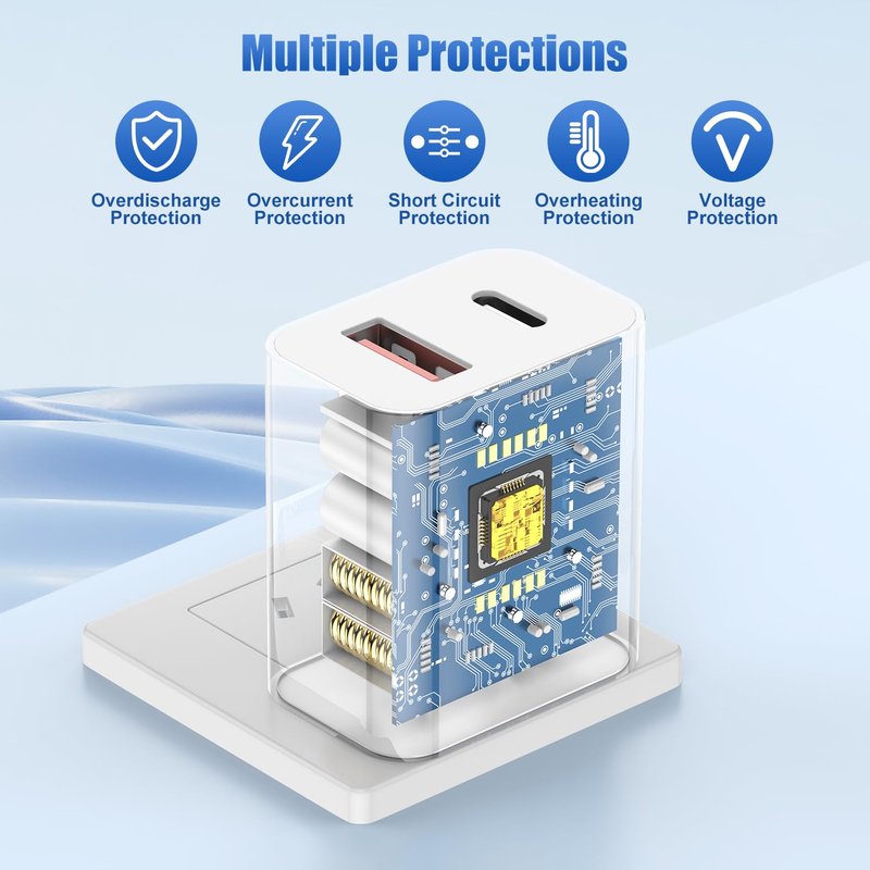 - [Safe & Reliable] The 20W USB charger block is built with safeguards to protect your devices against excessive current, overheating, and overcharging. The charger block will automatically stop charging when the power is full to safeguard your device.