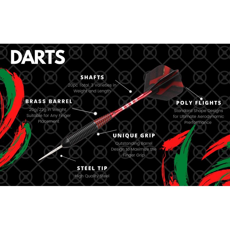 6pc Steel Tip Darts Set - Professional Darts Steel Tip for Dartboard - Includes Barrels + Plastic / Aluminum Shafts + O'Rings + Flights + Sharpener + Wrench (20g Red/ 22g Green -10422)