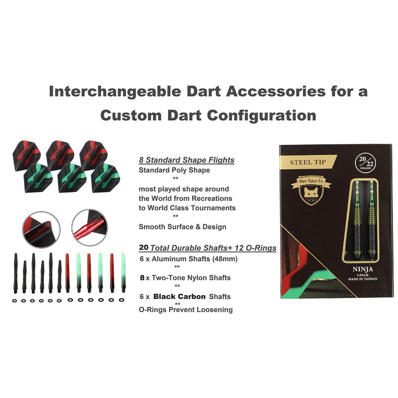 Professional Darts Set - Customizable Configuration 6 Steel Tip Darts (2 Styles) | 18 Shafts (3 Styles) |8 Standard Flights (2 styles)| 12 O-Rings | Darts Tool | Darts Sharpener and Case