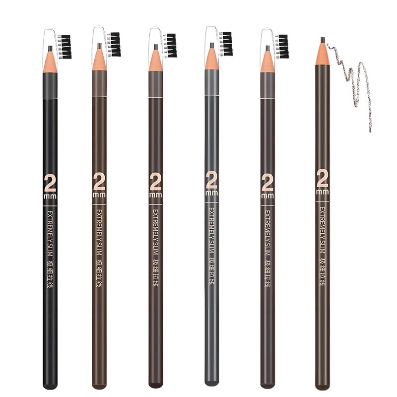 6pcs 2mm Ultra-Thin Eyebrow Pencil with Brush Waterproof Long-Lasting Slim Eyebrow Pencil Peel off Microblading Mapping Pencils (Mix 6 Colors)