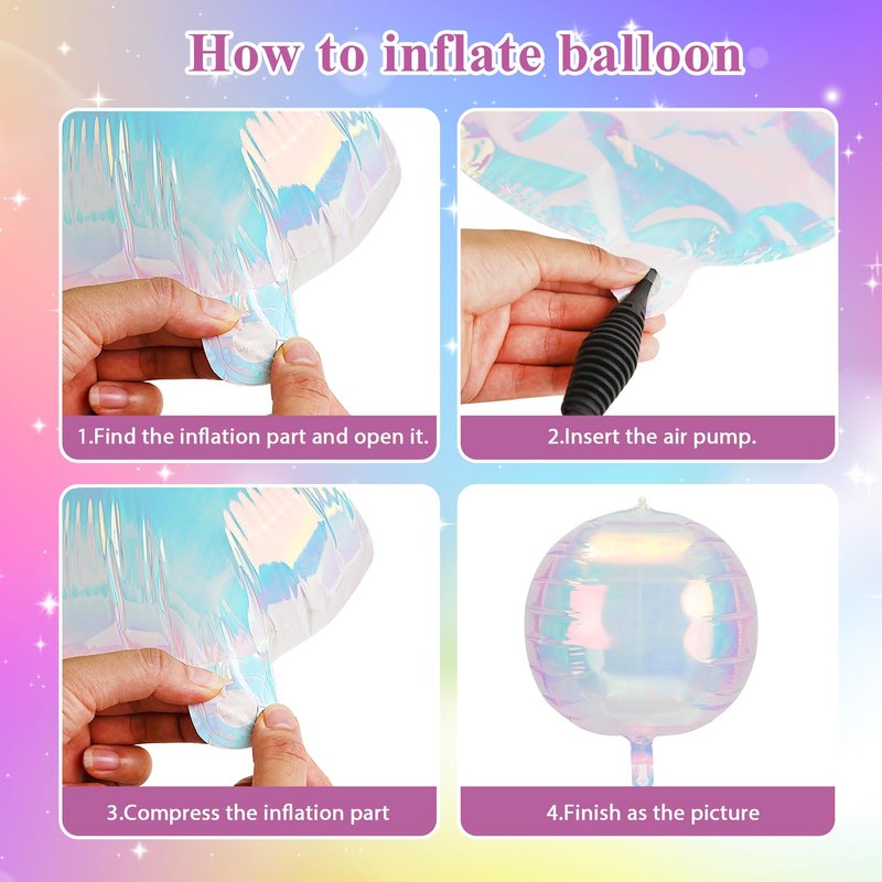 - RAINBOW DISCO BALLOONS: You will receive 6 sparkling Iridescent 4D Sphere Balloons. Includes 3 rainbow ball balloons, size: 22ich. Equipped with 3 sparkling exploding star balloons, size: 22 inches. Sufficient quantity and size to meet your party decoration needs.