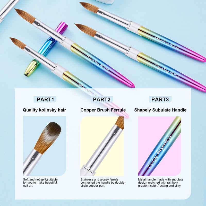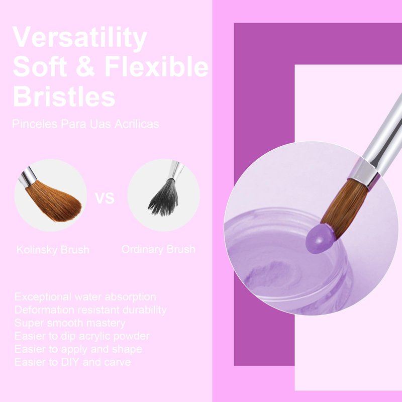 - 🖌️These nail brushes are made with the finest sable hair and Kolinsky hair. It is flexible and durable. It is a necessary nail art tool to create acrylic nails, Apply acrylic products easily, smoothly, and consistently.
