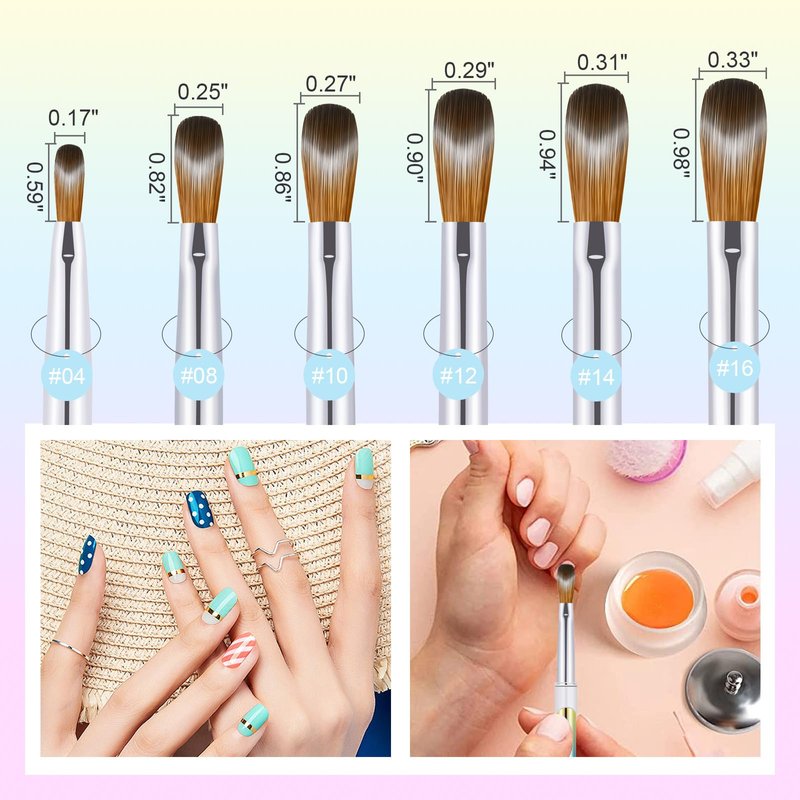 - 🖌️The set includes 6Pcs Size 4/8/10/12/14/16, ideal for both beginners and pros seeking the perfect brush size for their nail art endeavors.